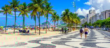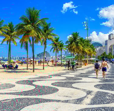 A orla mais famosa do Brasil te espera com muito sol, água de coco e aquele clima gostoso de fim de tarde. Dica: caminhe pelo calçadão icônico e aproveite para tirar fotos no Forte de Copacabana!